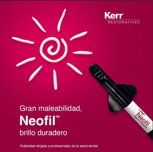NeoFil de Kerr es una resina compuesta basada en tecnología de nanorrelleno, formulada para ofrecer un balance óptimo entre resistencia mecánica, estética y manejabilidad clínica.